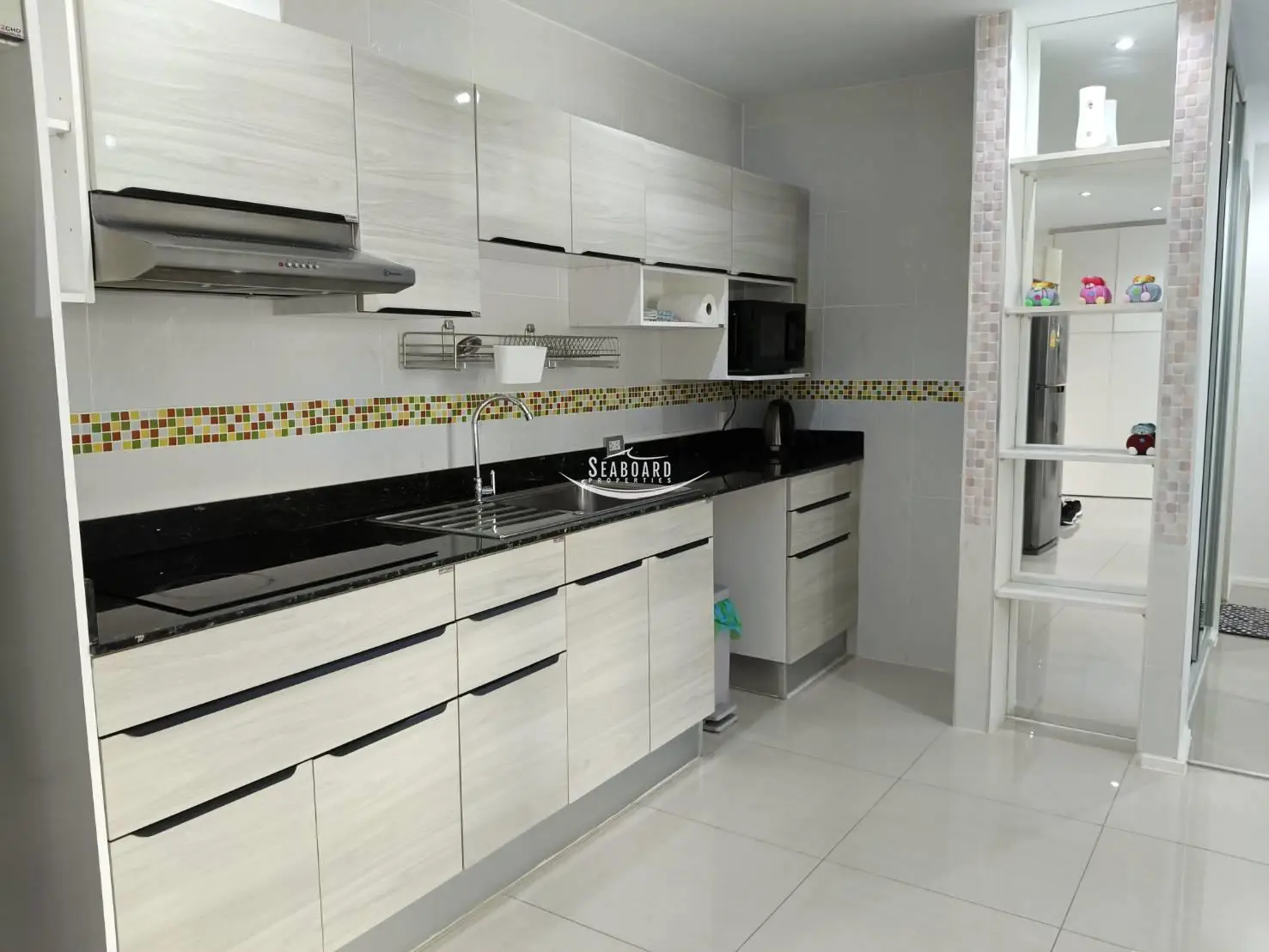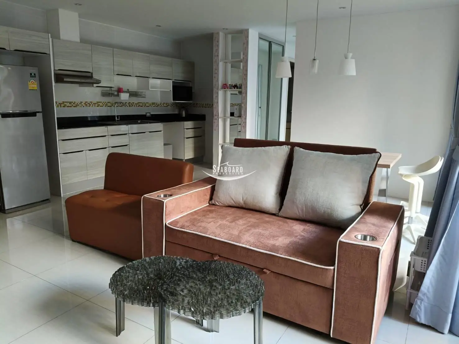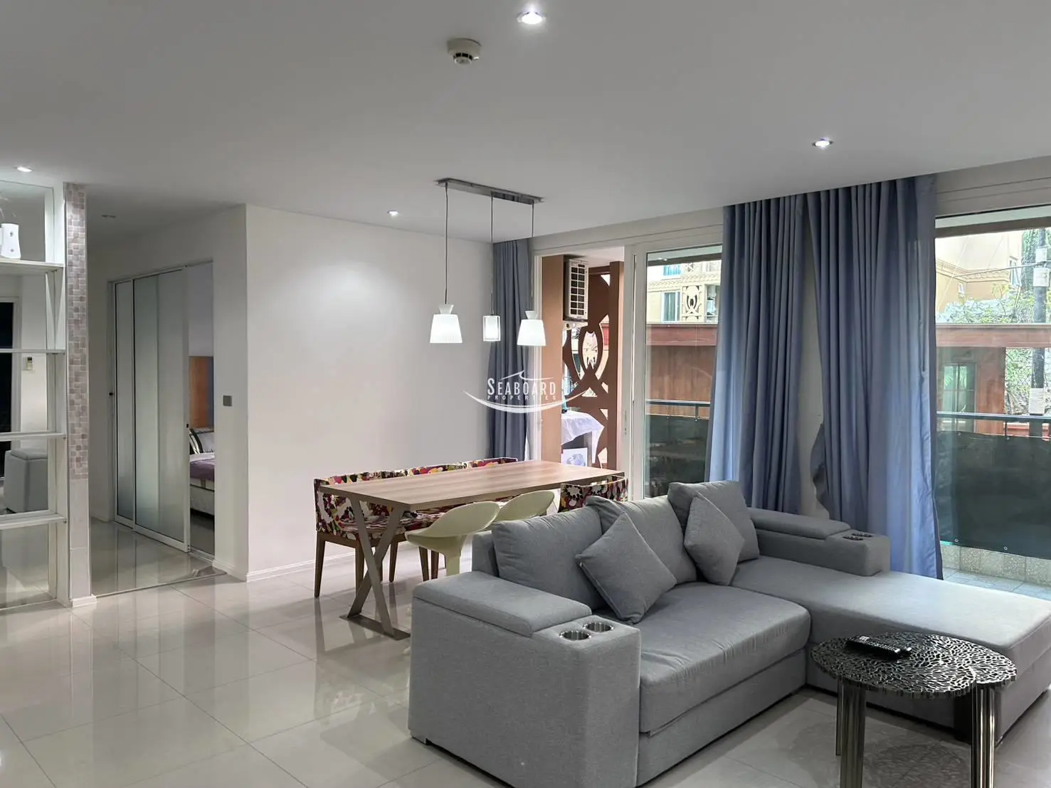 This 2-bedroom apartment is located on the 2nd floor with a view of the large communal swimming pool. The apartment comes fully furnished with a spacious fitted European kitchen, air conditioning, a built-in wardrobe, 2 flat-screen TVs, and a washing machine on the balcony. The building offers 24-hour security, key card access, a large lagoon-style swimming pool, a children's playground, an on-site restaurant, a 7 Eleven store, a gym, a rooftop garden, cleaning services, WIFI, Cable TV, and more. The monthly rent is 2,000 Baht for a 6-month contract and 25,000 Baht for a 1-year contract.