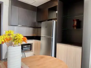 The development stands 35 storeys tall with 443 residential units, each thoughtfully designed with a focus on space efficiency, comfort, and contemporary style featuring sleek interiors, floor-to-ceiling windows, and panoramic city views that bring in abundant natural light. This is a 1 bedroom, 1 bathroom condo available to rent and on the market for sale. The property is on the 14th floor, comes fully furnished and measures 43 sqm.