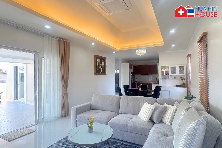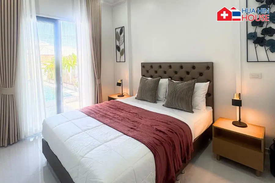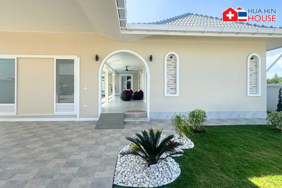 This newly built, single-storey luxury pool villa offers a comfortable and practical living environment, designed to meet European living standards. Located in the peaceful green surroundings of Thap Tai, Hua Hin, the property combines privacy, functionality, and elegant design — ideal for long-term living, retirees, or families.