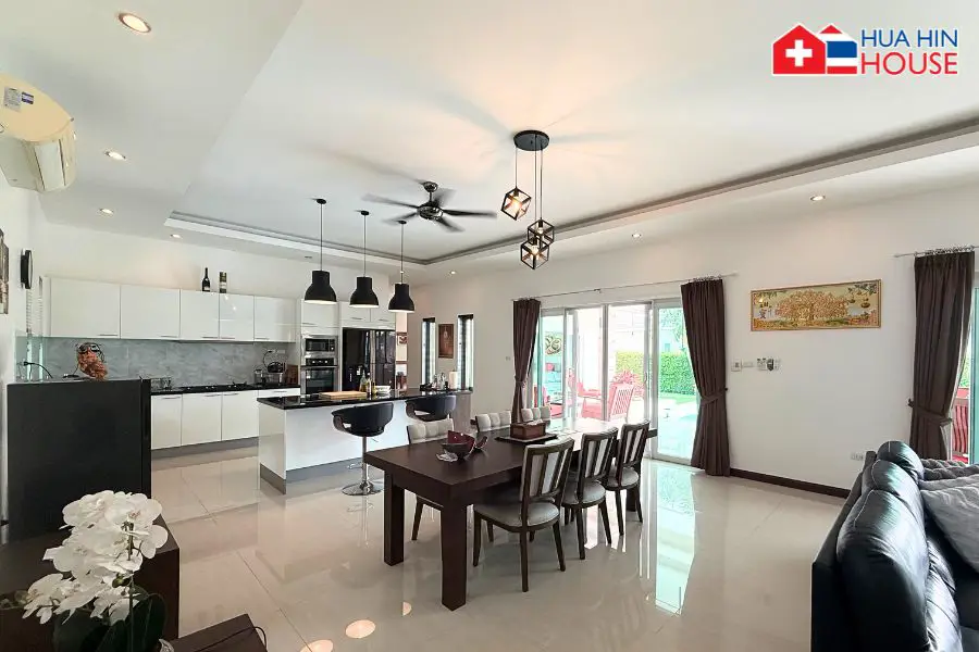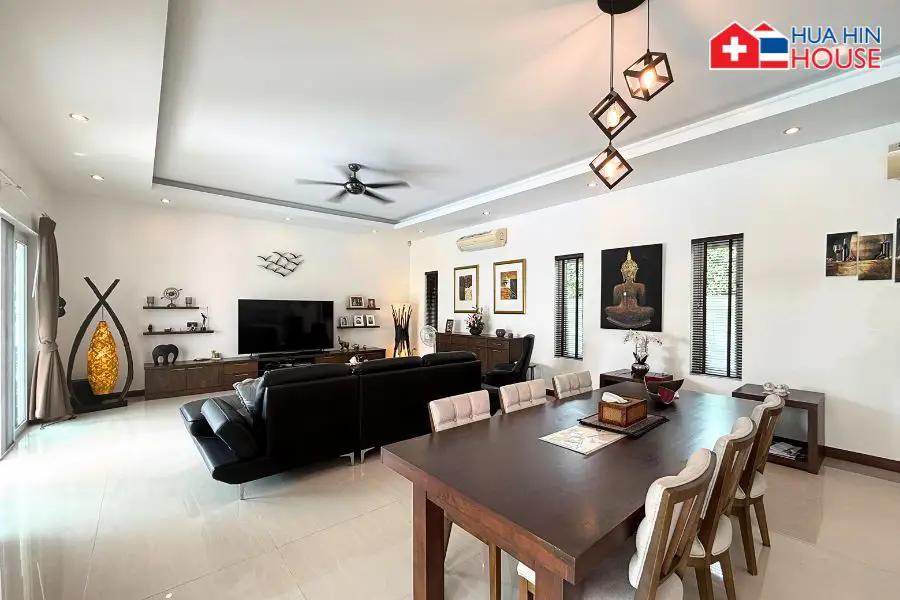 This modern private pool villa offers spacious living, high-quality construction, and a peaceful natural setting surrounded by green mountains. Ideal for family living, a holiday home, or a long-term investment, the property is located in a quiet residential area with convenient access to Hua Hin and Cha-Am.