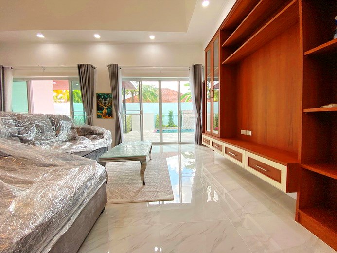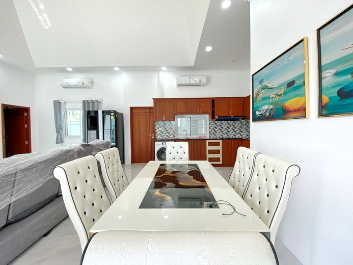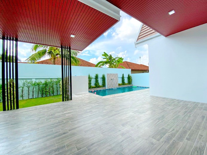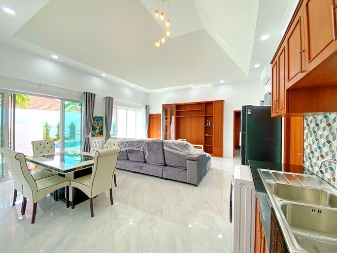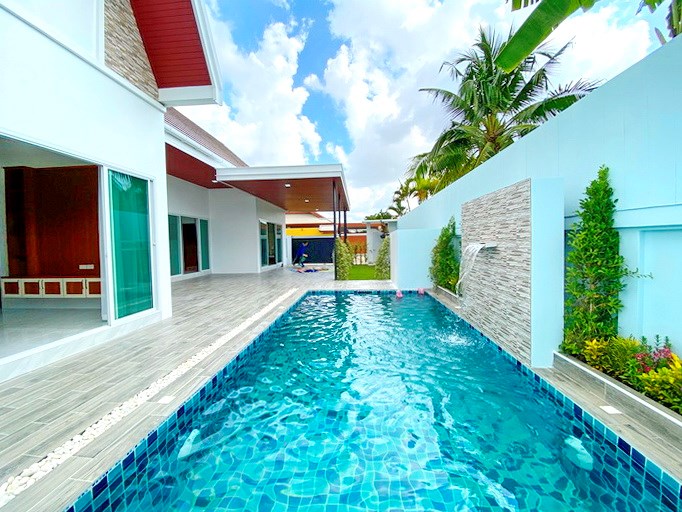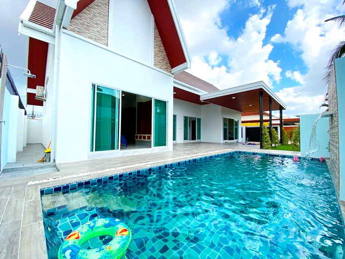 PATTAYA REAL ESTATE: Brand new pool villa for sale, land size 288 sqm, living area 150 sqm, 3 bedrooms, 4 bathrooms, fully furnished, European-style kitchen, garden, private swimming pool