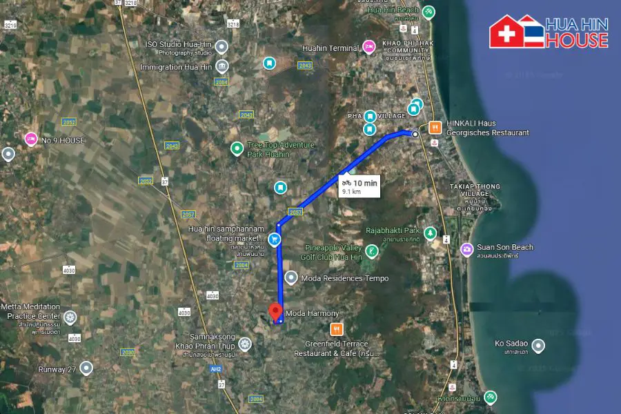 Only 10 minutes from Hua Hin downtown, close to Pineapple Valley Golf Club, Hua Hin Floating Market, and Rajabhakti Park.
