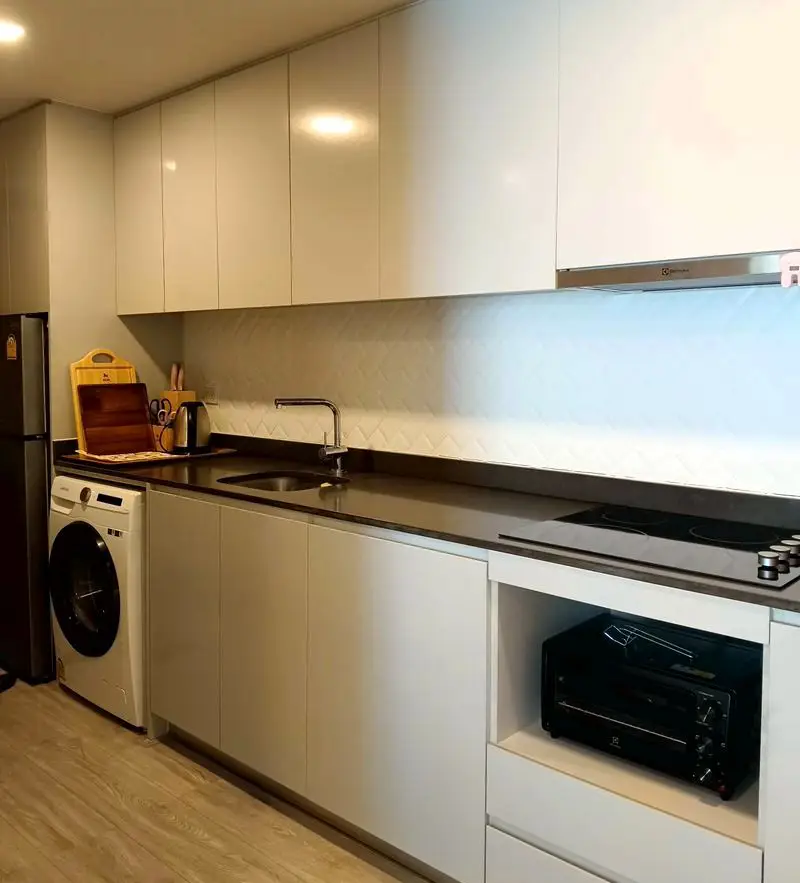 Maestro 14 provides residents with a full range of premium facilities that enhance comfort and convenience. Highlights include a rooftop swimming pool with panoramic views, fully equipped fitness center, library and co-working lounge, garden and BBQ area, sauna, laundry room, underground parking, and 24-hour security. The project’s well-planned layout creates a peaceful retreat amidst the energetic pulse of downtown Bangkok.