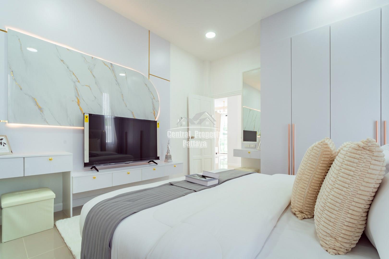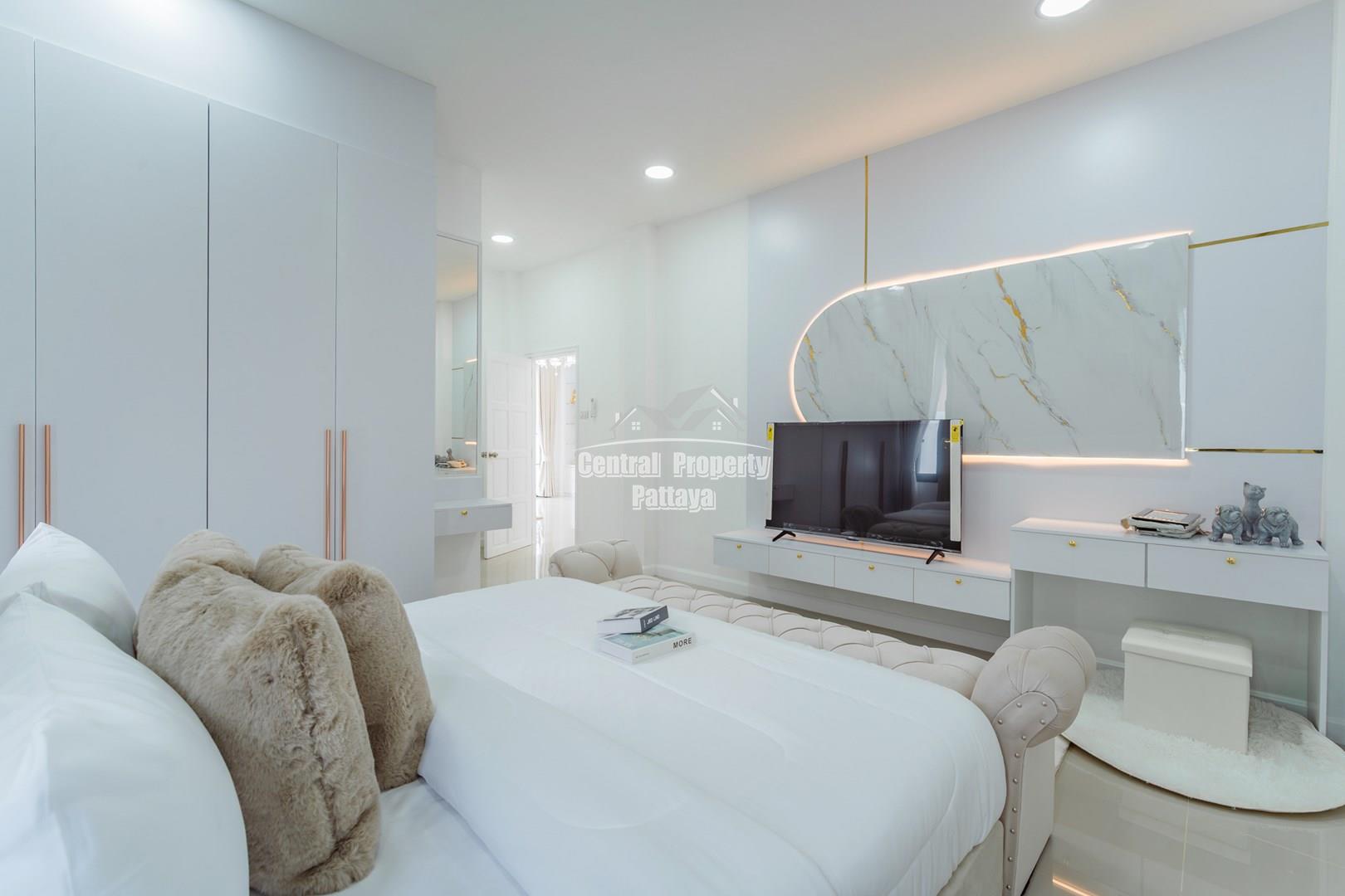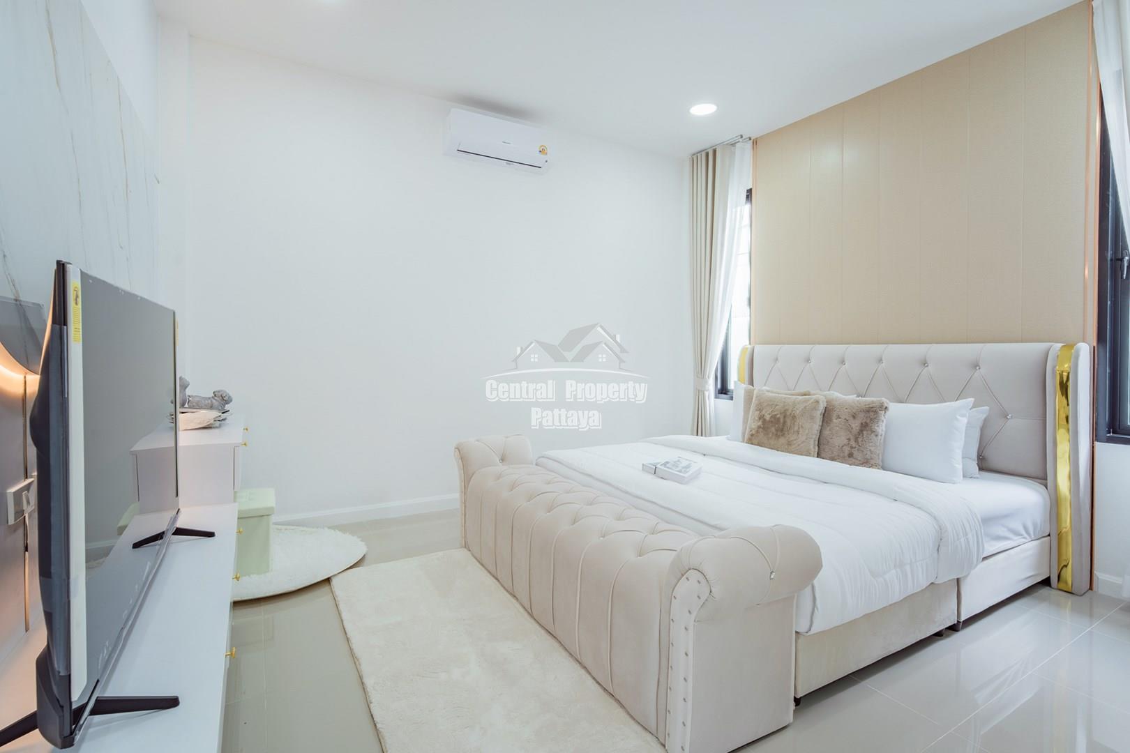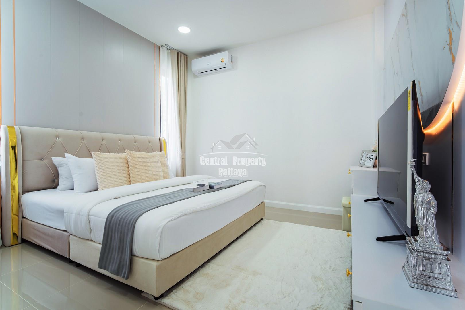 Additional features include covered parking, high-quality furnishings, and a location that combines peaceful residential living with easy access to international schools, golf courses, local markets, and central Pattaya.