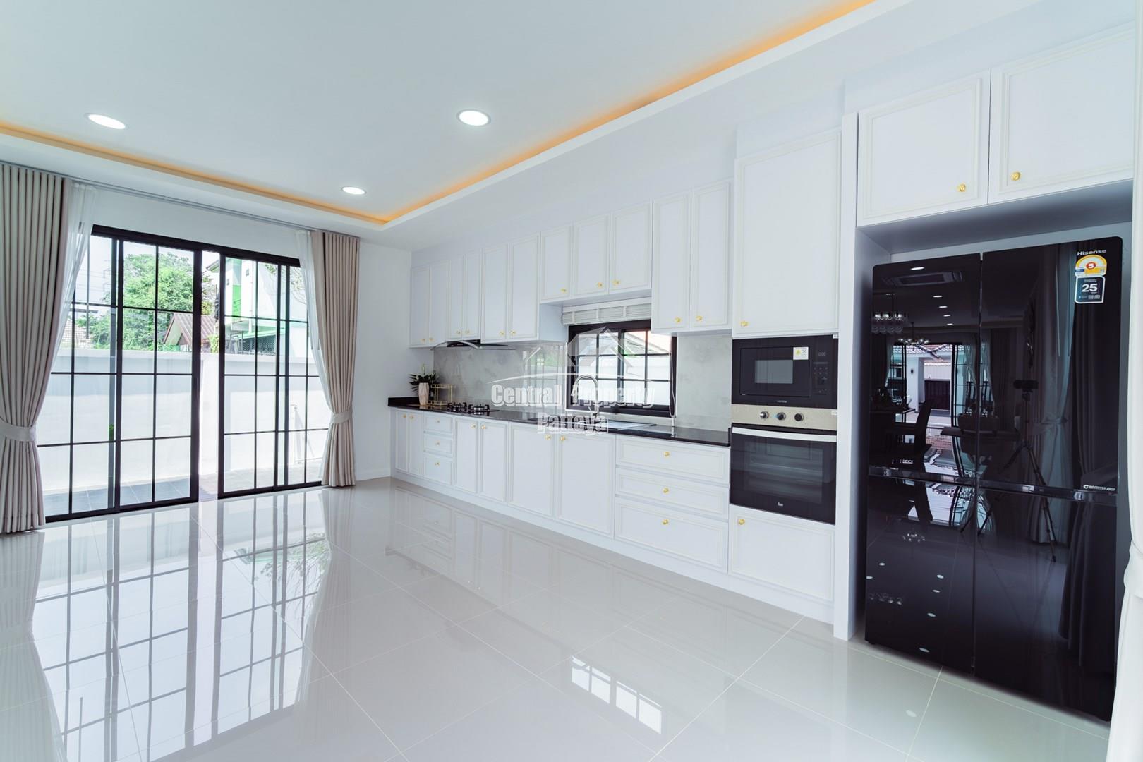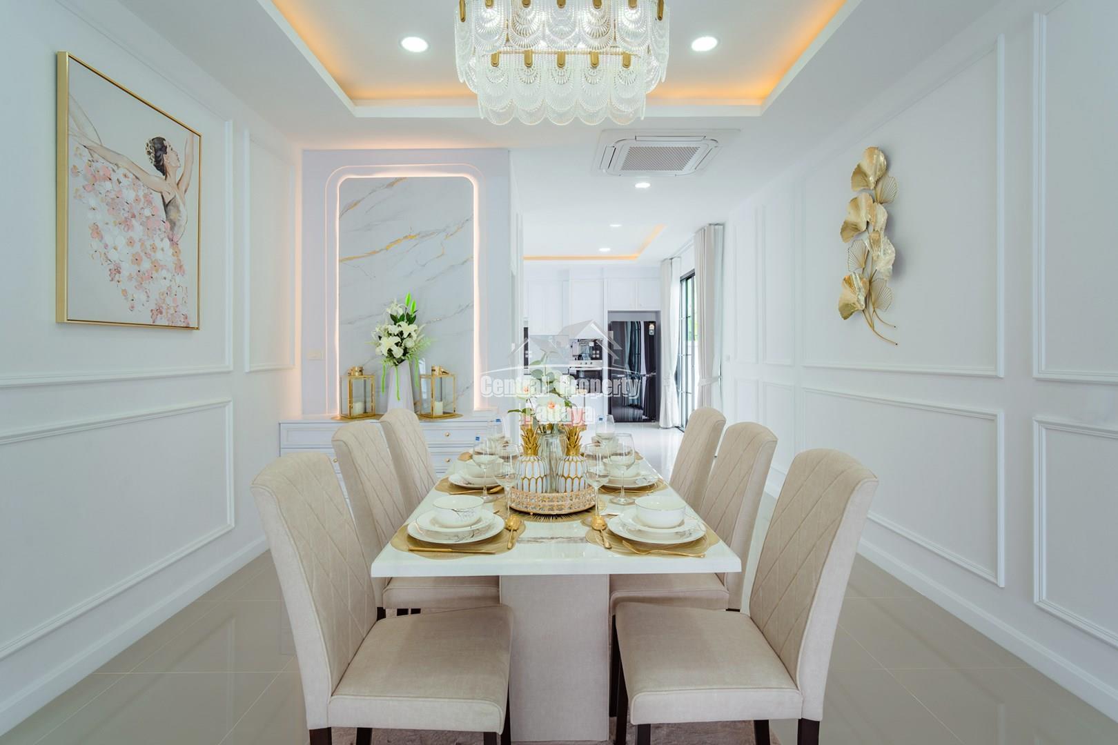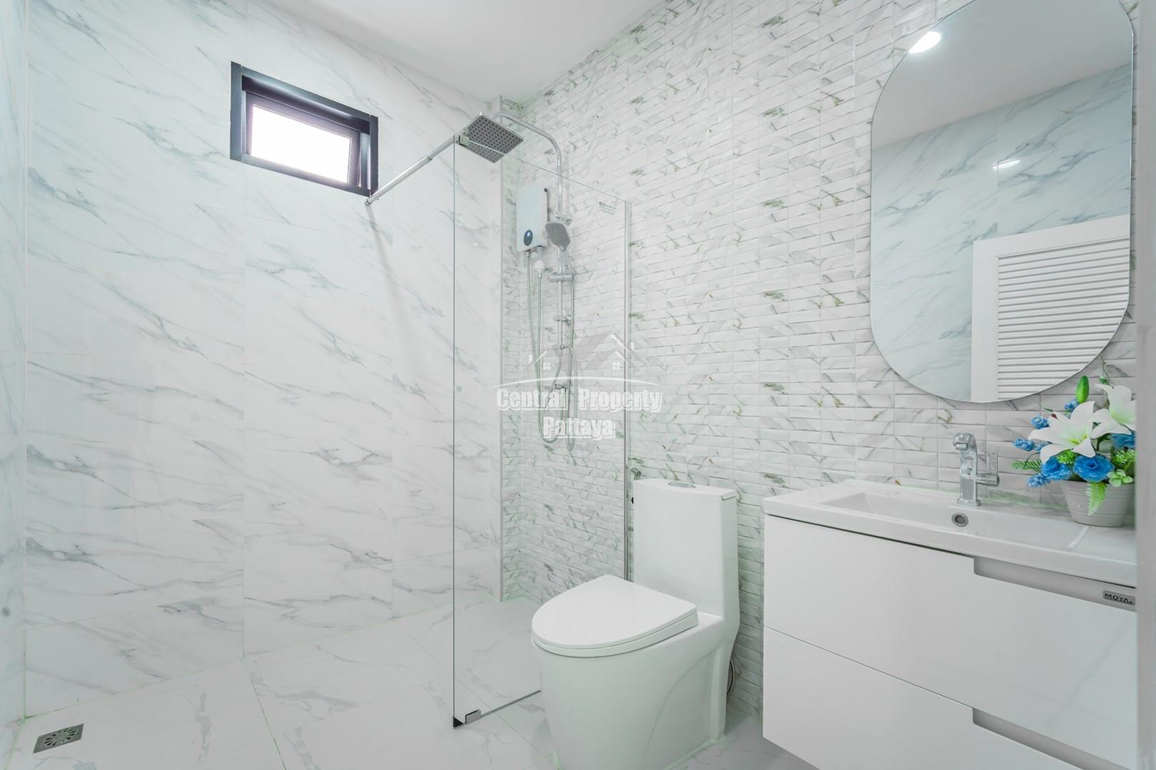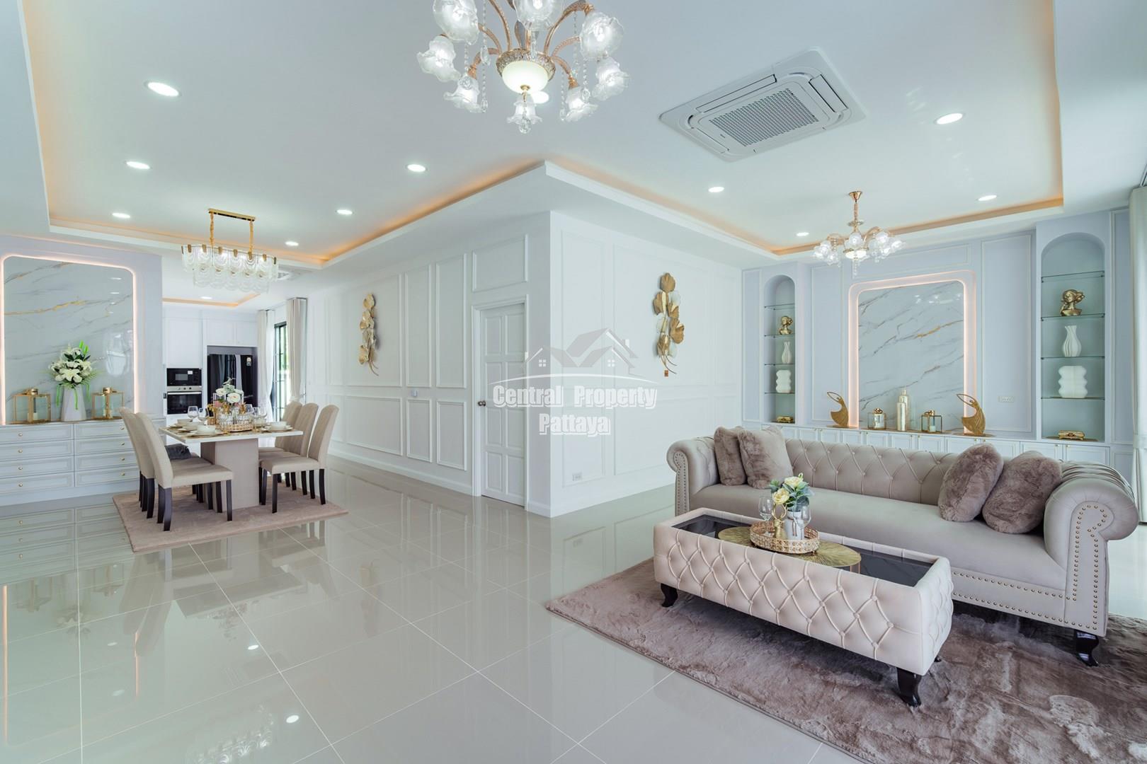 Additional features include covered parking, high-quality furnishings, and a location that combines peaceful residential living with easy access to international schools, golf courses, local markets, and central Pattaya.