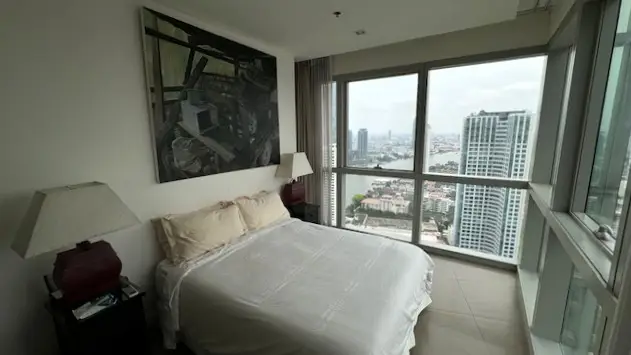 The project features two striking towers rising 71 and 42 storeys, housing over 800 residential units designed with elegance and modern comfort in mind. Each residence offers floor-to-ceiling windows, spacious layouts, and panoramic river and city views, ensuring a serene and exclusive living experience. This is a 3 bedroom, 2.5 bathroom corner unit residence available to rent. The property is fully furnsihed with contemporary decor, has an expansive open-plan living and dining area with floor to ceiling windows with panoramic views over the Chao Phraya River from every room. There is a European kitchen with premium appliances, large master suite with freestanding bathrub and dressing area and private balcony with sunset river views. The property measures 140 sqm and is on the 40th floor facing South.