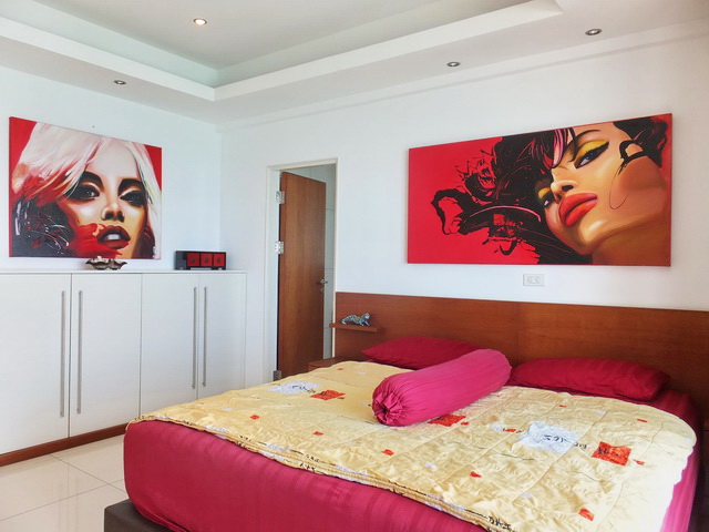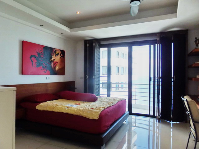 Sliding doors open to the master bedroom balcony with views overlooking Pattaya Bay.
