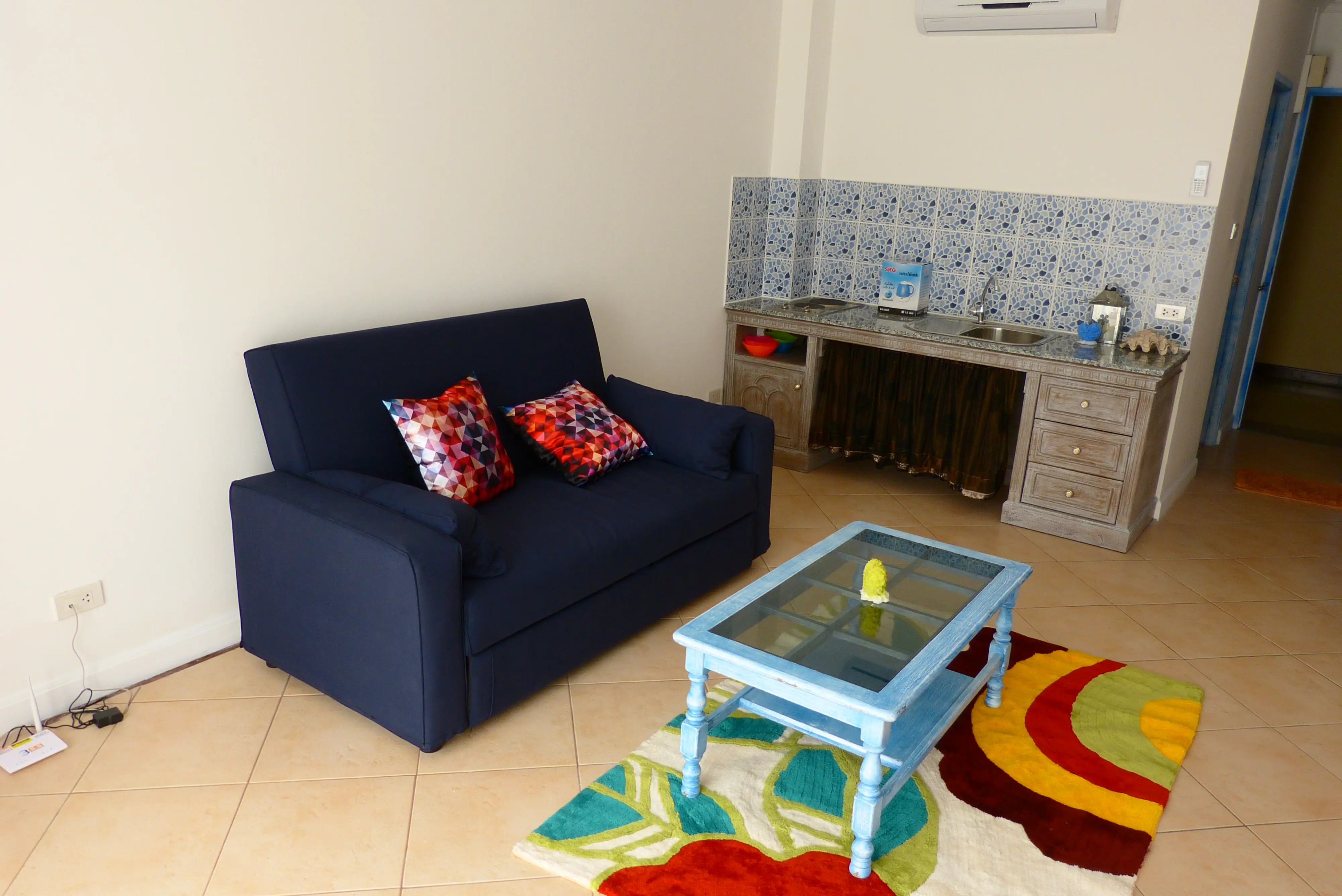 Large one bedroom apartment of 63 sq.m. newly renovated, bathroom and guest toilet, 2 flat screens, large communal pool, close to the beach, taxi, super market and many restaurants.