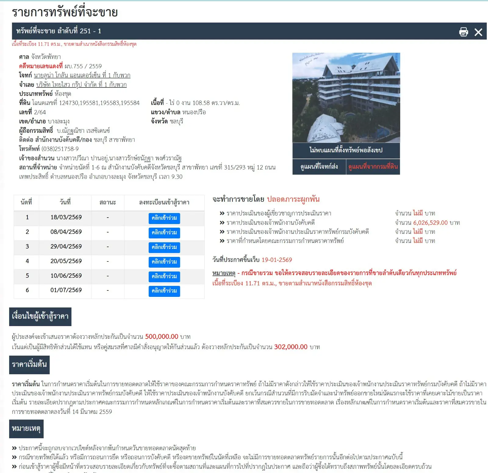 This property is officially listed for sale on auction by Legal Execution Department, according to court order by Pattaya Provincial Court. See dates below.