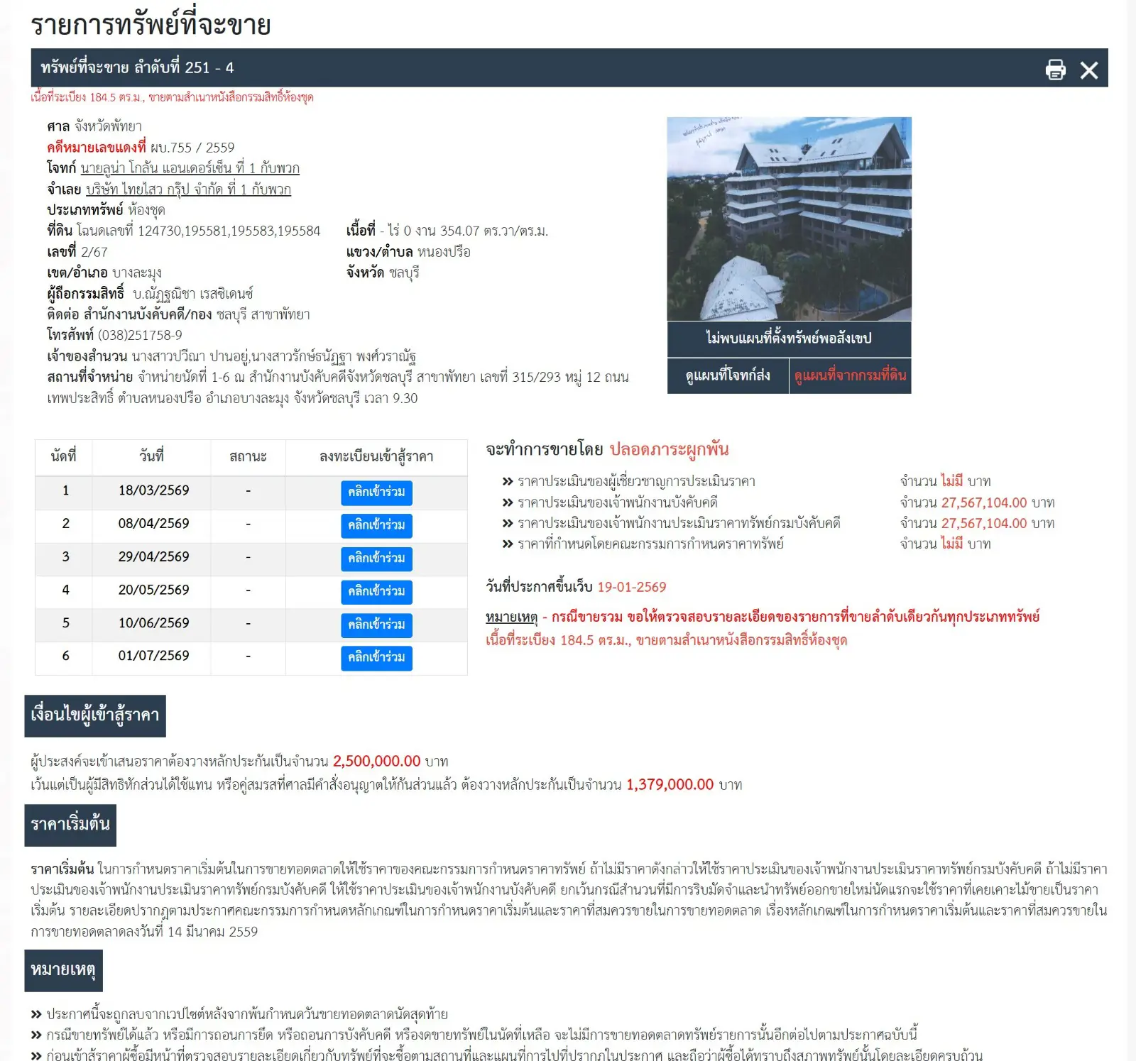 This property will be listed for sale on auction by Legal Execution Department, according to court order by Pattaya Provincial Court.