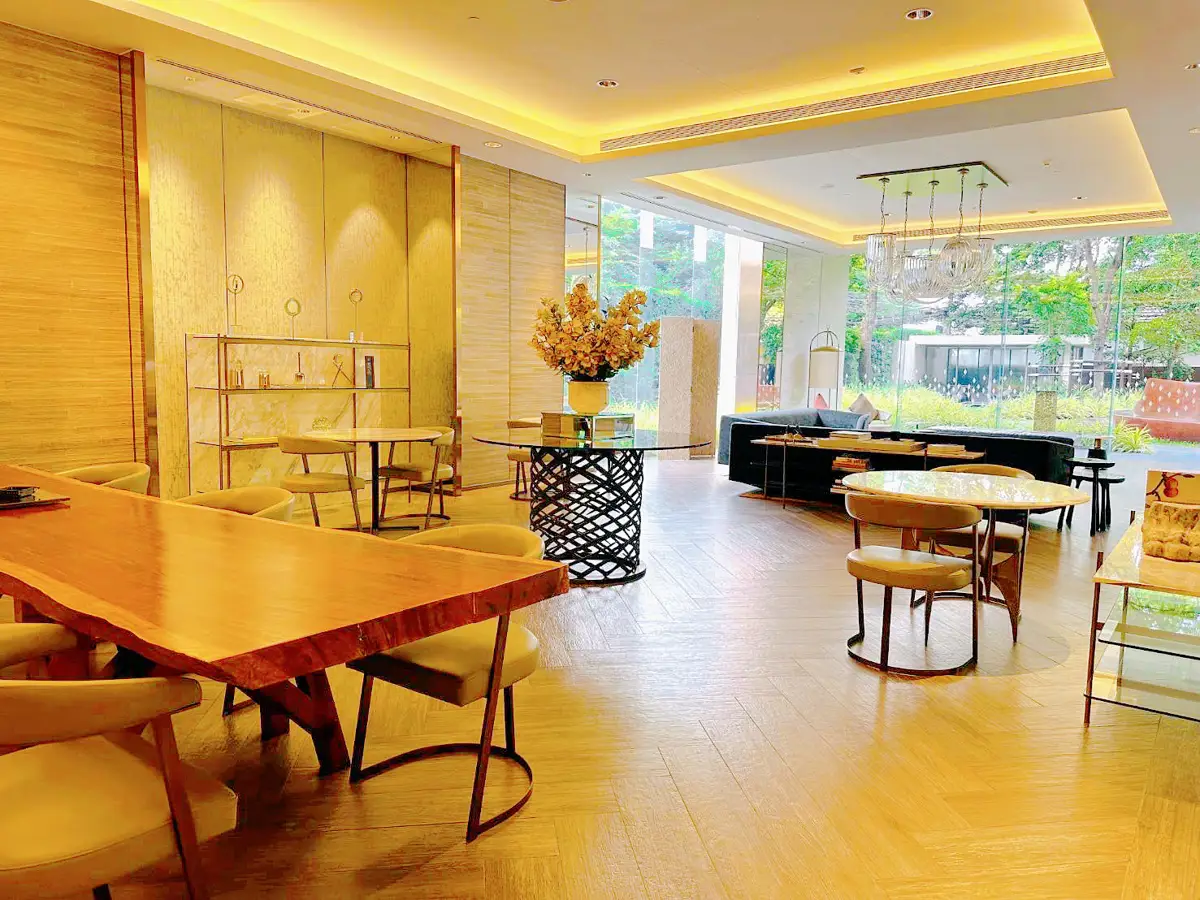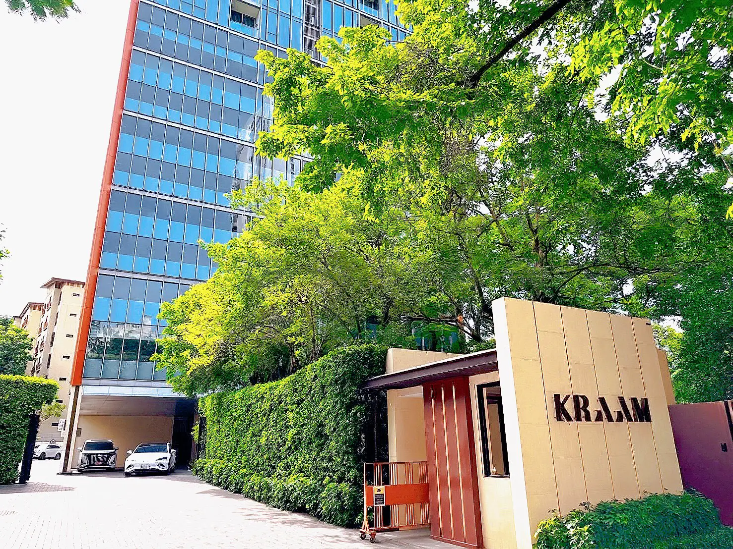 KRAAM Sukhumvit 26 offers a full suite of premium facilities, including a 50-meter saltwater swimming pool, state-of-the-art fitness center, steam and sauna rooms, yoga area, sky lounge, children’s playroom, private meeting rooms, and 24-hour concierge and security. The project was built with sustainability in mind, featuring smart ventilation systems and energy-efficient design principles.