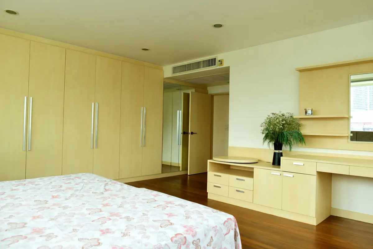 This is a spacious 3 bedroom, 3.5 bathroom apartment available to rent at Baan Sahasthinee in Phrom Phong towards Rama 4 Road. The apartment measures 250 sqm., comes fully furnished and includes washing machine, separate kitchen, Fibre Optic Internet, True Vision Cable Television and Tuk Tuk Shuttle service to Emporium and Sukhumvit 24. The building has a swimming pool and parking.