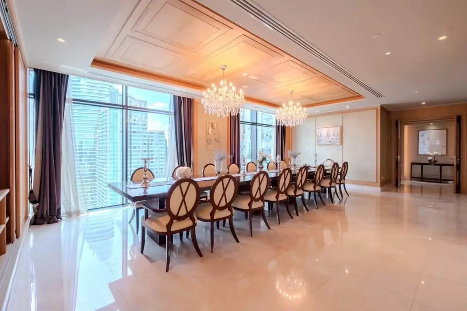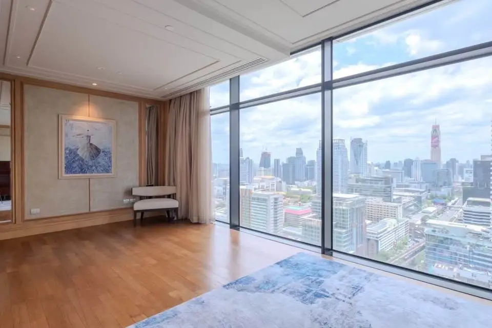 This is a luxury 3 bedroom, 4 bathroom leasehold property on the market for sale and available to rent at The Residences at The St. Regis Bangkok. The property measures a spacious 439.28 sqm, comes fully furnished and is situated on the 35th floor. The property has a spacious living and dining area with large terrace overlooking The Royal Bangkok Sports Club and a maid's quarters.