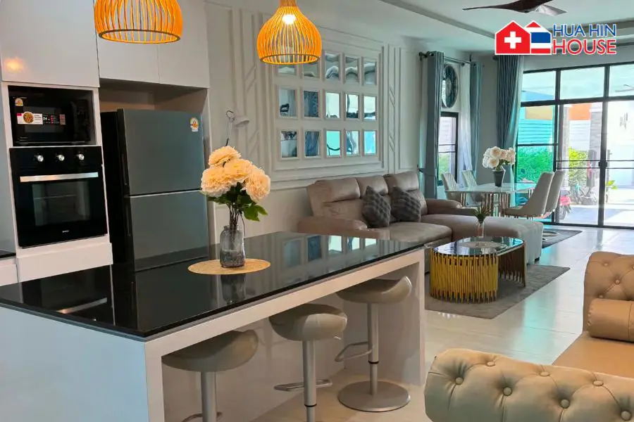 Entdecken Sie Ihr Traumhaus in einer der begehrtesten Gegenden Hua Hins! Diese stilvolle, voll möblierte 3‑Schlafzimmer-Poolvilla bietet Komfort, Raum und Privatsphäre – ideal zum Dauerwohnen, als Investition oder für einen Urlaubsort.
