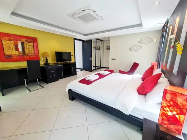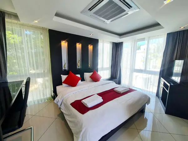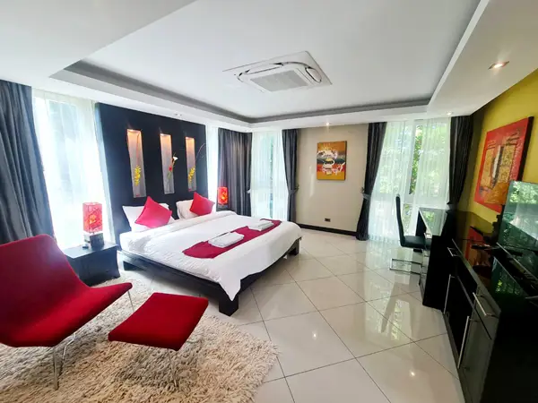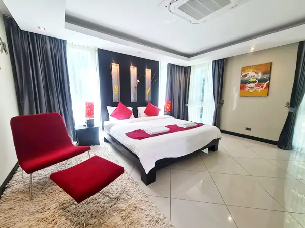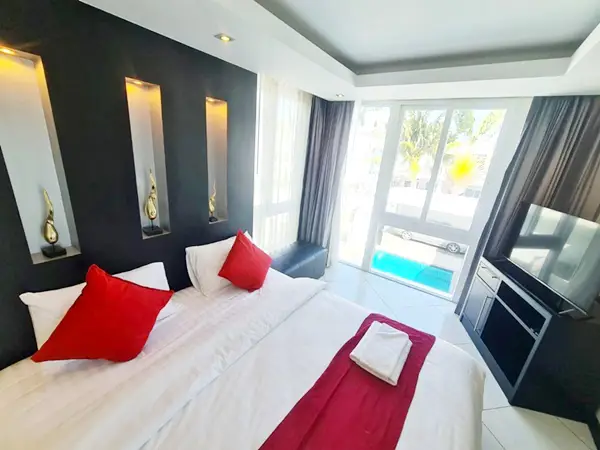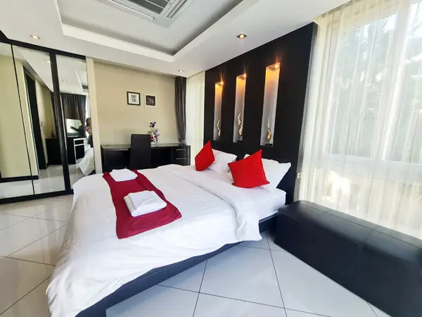 Palm Oasis Villas are located in Jomtien, 3 km from Jomtien beach. The area is ideal for visits to Jomtien Beach or Pattaya, which are only a few minutes away. Relax and take pleasure in your own personal little heaven close to Jomtien beach and South Pattaya. Each and every house includes a private pool and is encompassed by abundant greenery in an exotic setting. Ideal for families with children, as the estate compound offers a secure environment, and the location is nowhere near the hustle and bustle of downtown Pattaya.