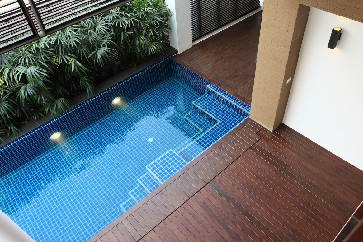 This is a detached 4 story house available to rent unfurnished in a private residential compound of just 7 houses on Sukhumvit 18, between Asoke and Phrom Phong. The property has a living area of around 455 sqm and 220 sqm of outdoor space, including a private swimming pool on the 2nd floor terrace. There are 4 bedrooms, a study/family room, 5 bathrooms, powder room, store room, maid's quarters and laundry area, fully equipped kitchen and Thai kitchen, foyer and living and dining area.