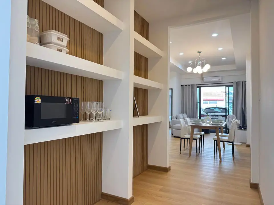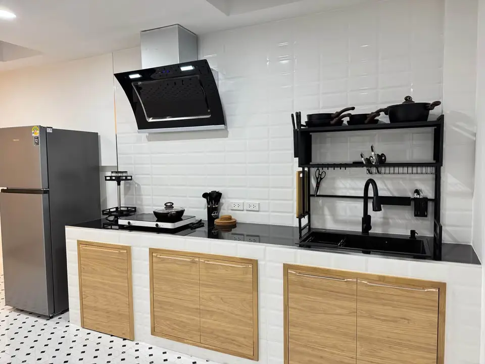 Modern 2-Bedroom House for Rent in Thalang (Flood-Free Zone). Move right into this fully furnished home featuring all-new furniture, located in a prime Thalang area close to Cherngtalay. Guaranteed not flooded, this 100 sq.m. house offers 2 bedrooms plus an extra room, 1 bathroom, a full kitchen, and private parking.